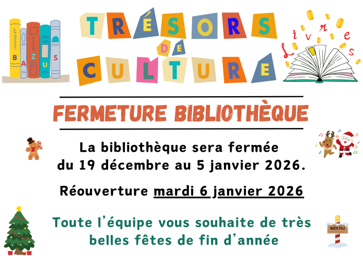 décembre 17, 2025Published by Mairie de Bazus on décembre 17, 2025Categories Actualité de BazusFermeture de la bibliothèque