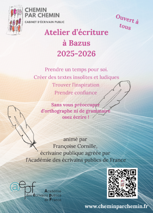 septembre 18, 2025Published by Mairie de Bazus on septembre 18, 2025Categories Actualité de BazusAteliers d’écriture à Bazus