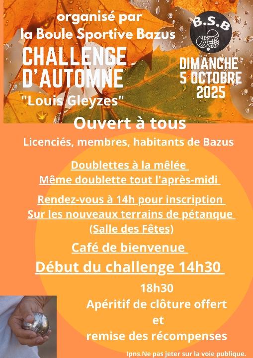 septembre 29, 2025Published by Mairie de Bazus on septembre 29, 2025Categories Actualité de BazusBSB – Challenge d’automne