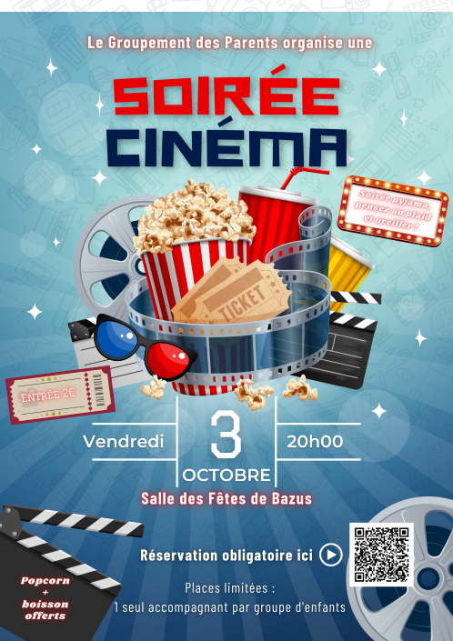 septembre 29, 2025Published by Mairie de Bazus on septembre 29, 2025Categories Actualité de BazusSoirée cinéma