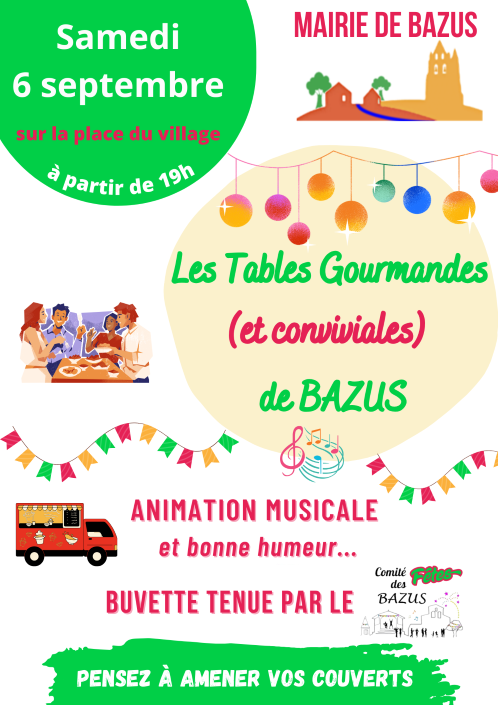 août 25, 2025Published by Mairie de Bazus on août 25, 2025Categories UncategorizedTables Gourmandes 2025